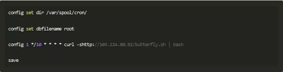 通过上述指令,将下载脚本:http://103.224.80.52/butterfly.sh并将该脚本写入到计划任务中,由计划任务启动执行。